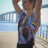 Top com um corte clássico e pouco decotado, atrás com um corte diferenciado e mais ousado com o seu detalhe em tule.